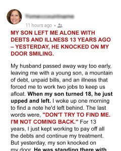 My Son Left Me Alone with Debts and Illness 13 Years Ago – Yesterday, He Knocked on My Door