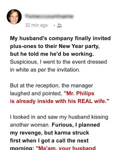 New Year’s Eve arrived, and I stood in front of the mirror, adjusting my white dress. Curiosity had gnawed at me for days. Why didn’t he want me at the party? Was he embarrassed? Hiding something?