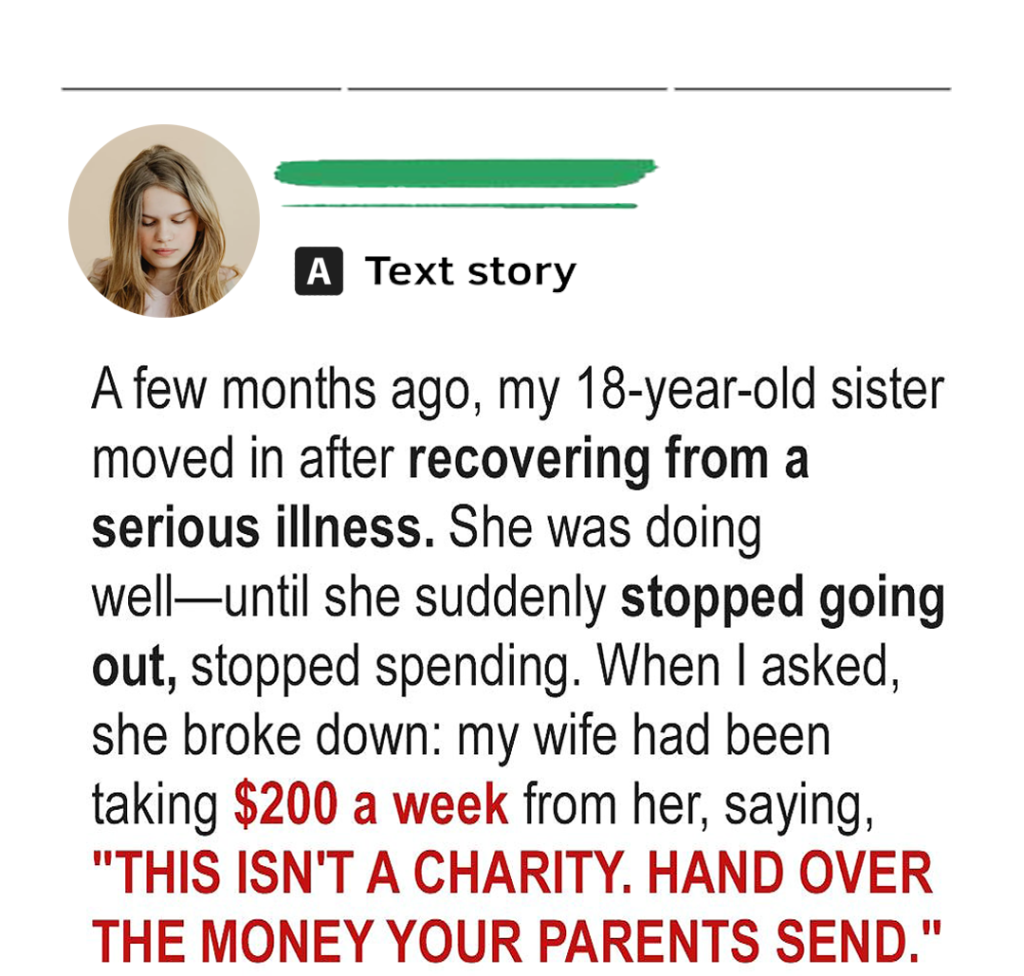 “Are you serious right now? She’s my sister, not a tenant! She’s a sick teenager trying to recover, and I’m already getting money from our parents to help support her! Money you knew about. And I also planned financially for her stay too!”