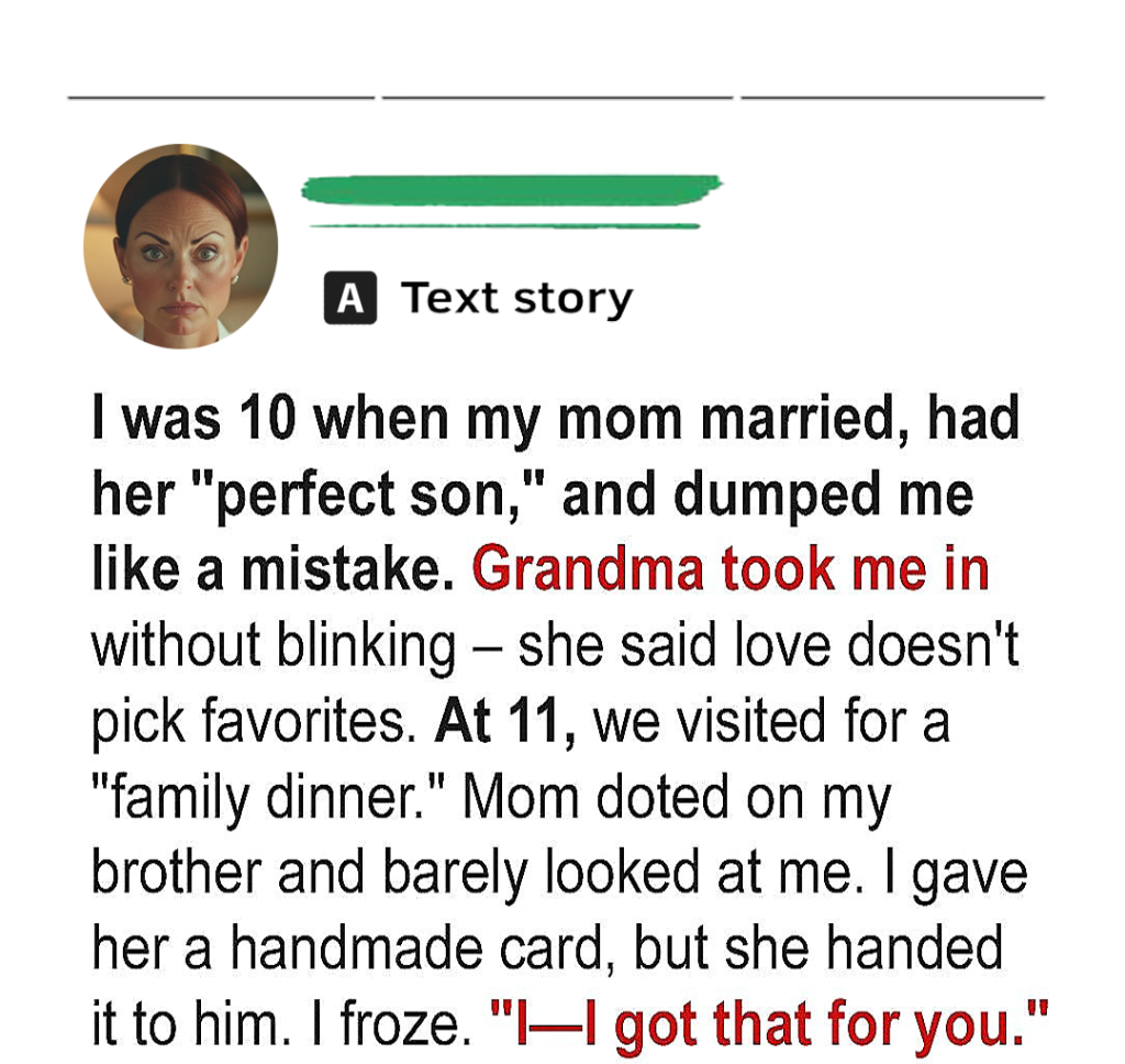 I was ten when my mother decided I was a burden. She had a new family and I didn’t fit the picture. So she got rid of me and gave me away like I was nothing to raise her “perfect son.” My grandma took me in and loved me. Years later, the woman who abandoned me showed up at my door… begging.