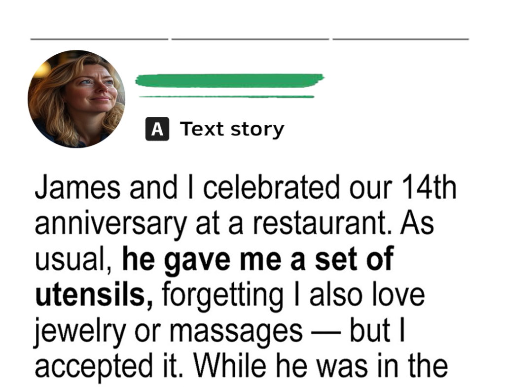 We were celebrating our anniversary at an upscale restaurant — the same one we’d visited on our honeymoon. It was James’ idea, a rare romantic gesture. I wanted to believe he’d been planning something special. Maybe tonight would be different. Maybe, he’d finally see me.