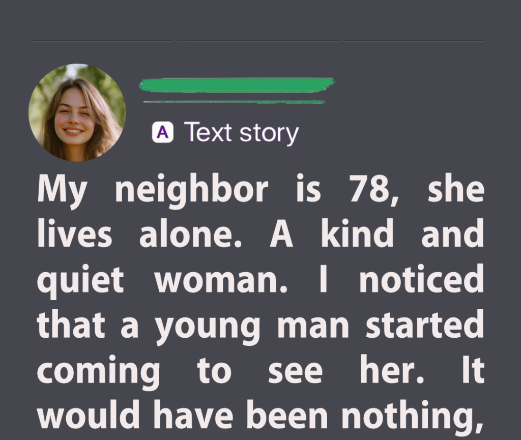 - My neighbor is 78 years old, she lives alone. A kind and quiet woman. I noticed that a young man started coming to see her. It would have been nothing, but after he came I would hear screaming.