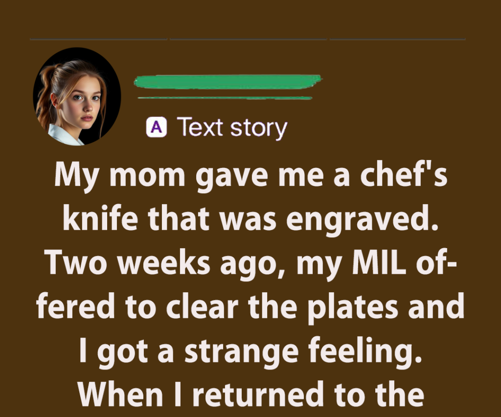 When I was done cooking, I left the knife on the counter to wash later. After dinner, my MIL offered to clear the plates, which wasn’t unusual, but this time I got a strange feeling. It was like something was trying to warn me about her. But I shrugged it off.