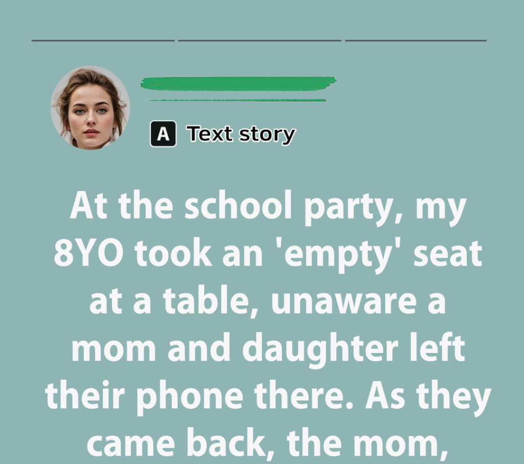 - At the school party, my 8-year-old took an “empty” seat at a table, unaware that a mom and daughter had left their phone there. As they came back, the mom, upset, started nagging, pointing at him.