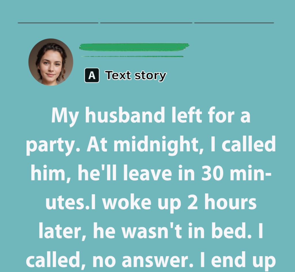 - My husband left for a corporate party. At midnight, I was going to bed and called him to ask when he would be back. My husband said he was leaving in 30 minutes. So I went to bed and fell asleep.