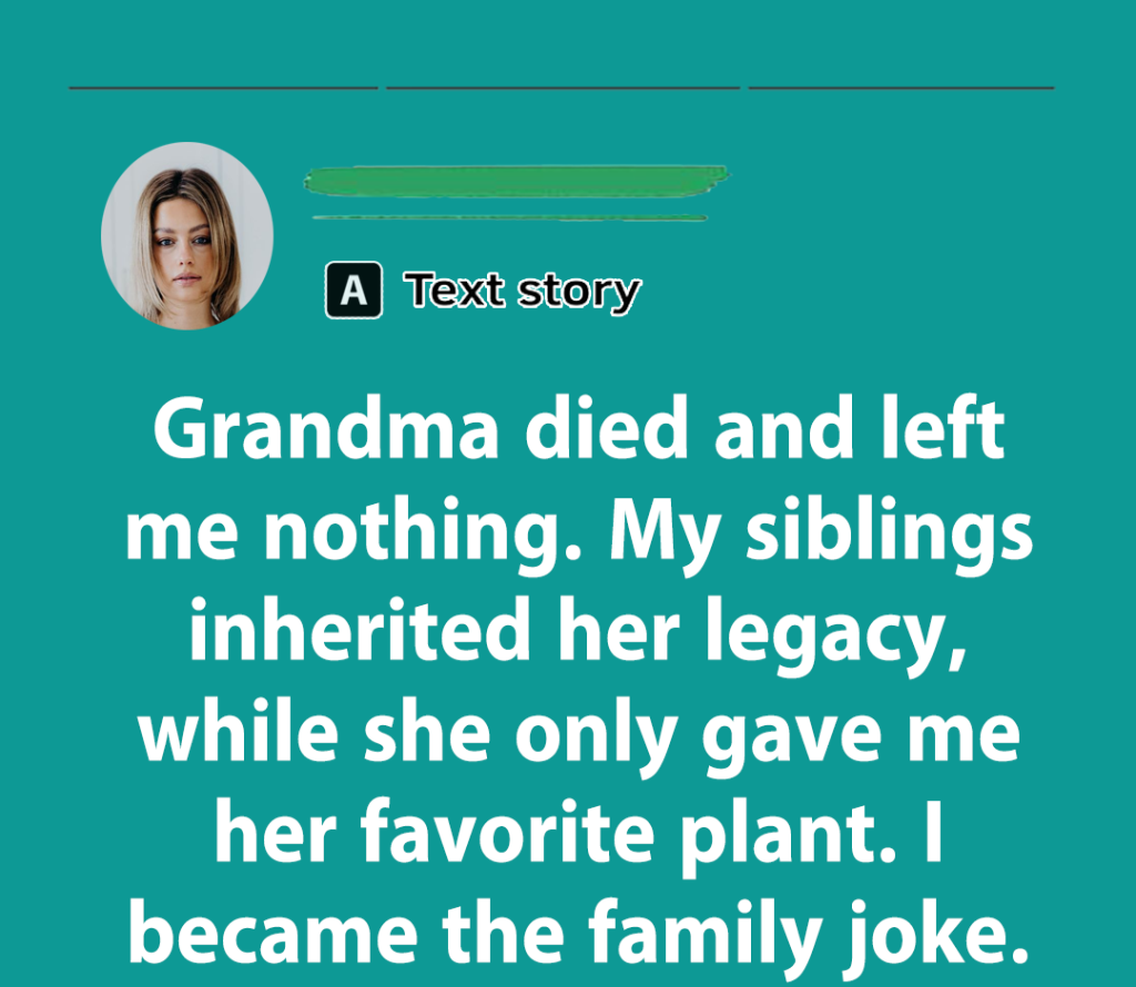 • Grandma died and left me nothing. My siblings inherited her legacy, while she only gave me her favorite plant. I became the family joke.