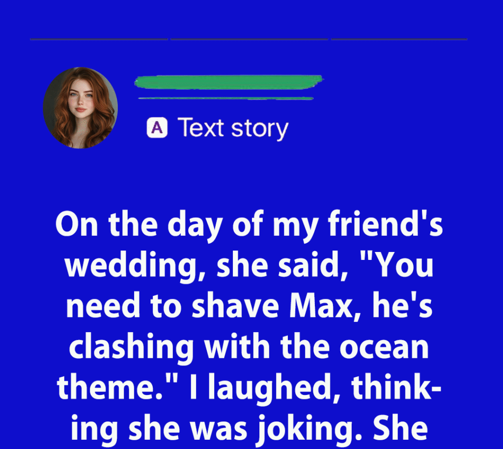 On the morning of the wedding, my best friend pulled me aside and said, “You need to shave Max right now, he’s clashing with the ocean theme.” I laughed, thinking she was joking. She wasn’t.