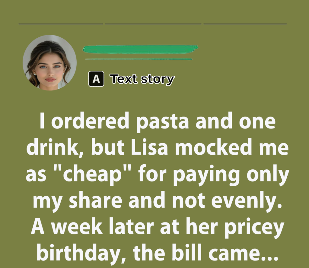 That hit me hard. I stayed quiet, paid my share, and let it go. But here’s where it gets wild: a week later, Lisa invited me to her birthday dinner at a super pricey rooftop restaurant. I was hesitant, but everyone was going, so I said yes.