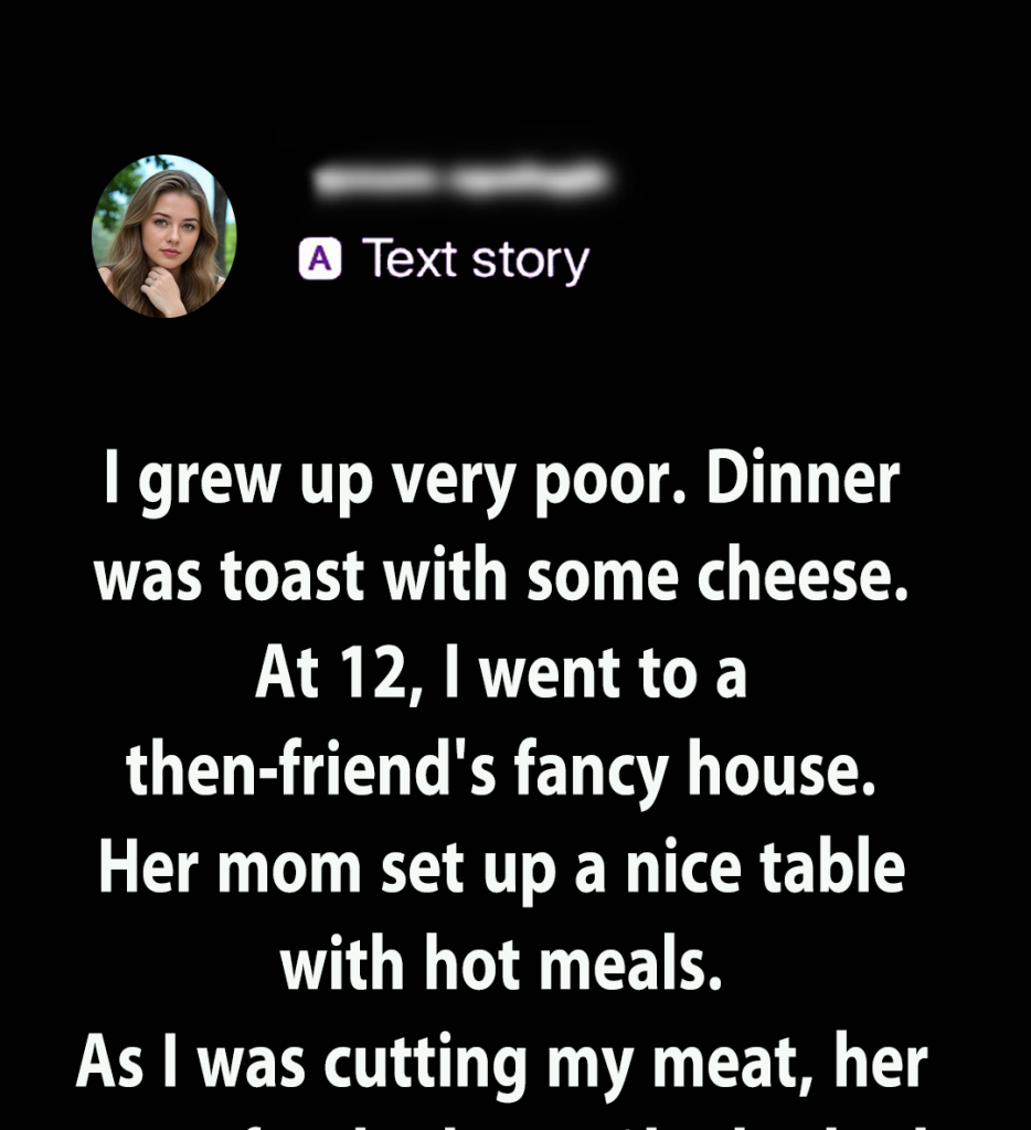 I grew up very poor. Dinner was toast with some cheese. At 12, I went to a then-friend’s fancy house.