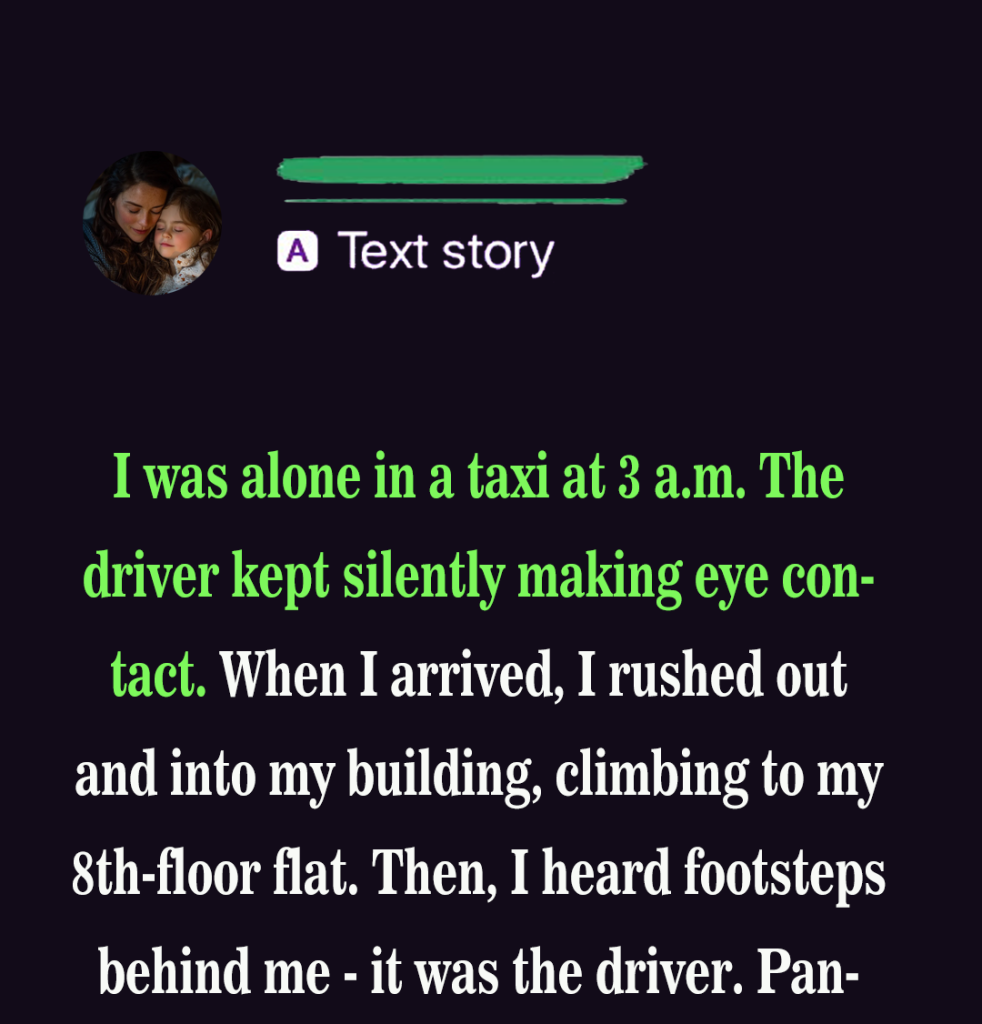 I was alone in a taxi at 3 a.m. The driver kept silently making eye contact. When I arrived, I rushed out and into my building, climbing to my 8th-floor flat.