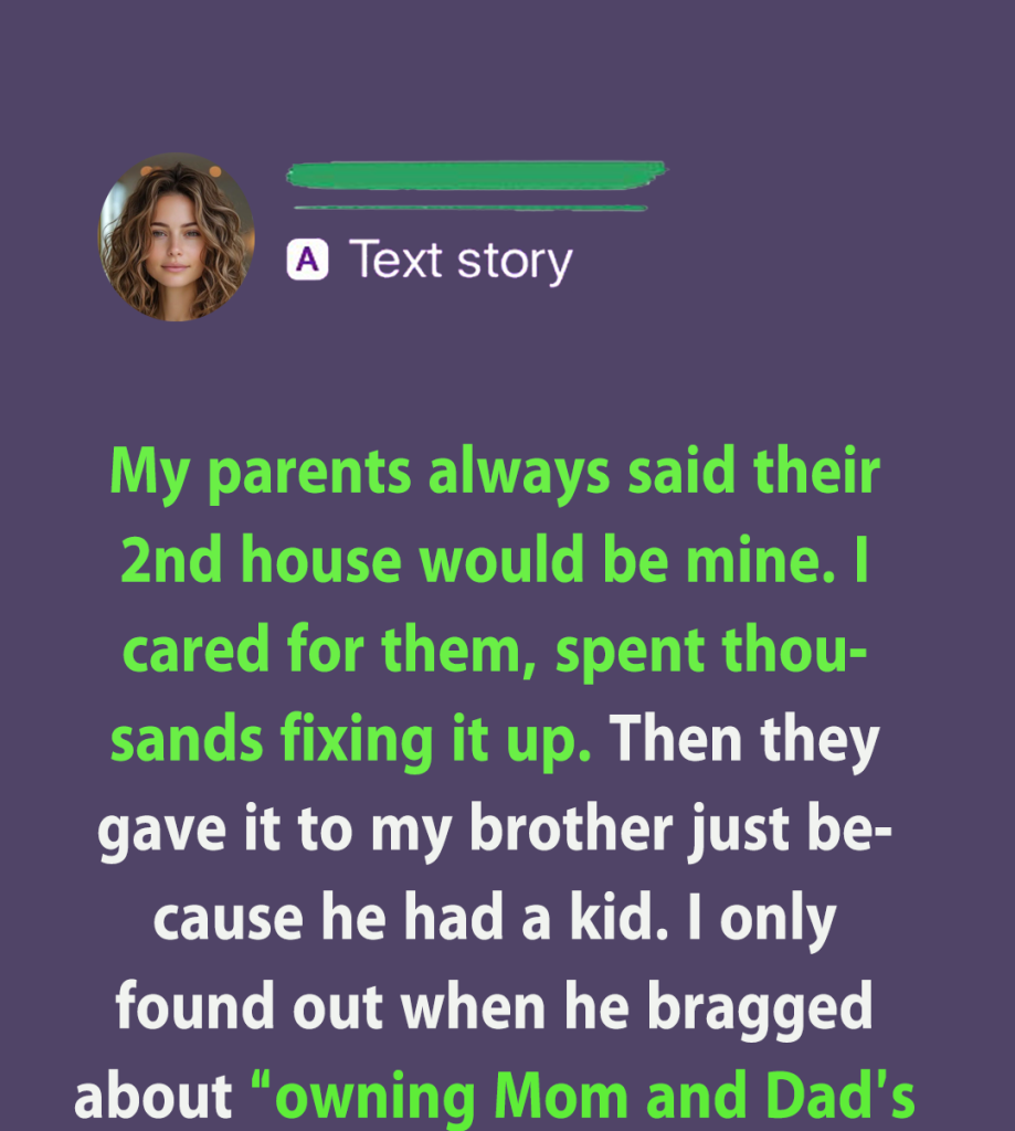 Growing up, my parents always told me: “One day, our second house will be yours.” I was the one who stayed close. I did the grocery runs, the repairs, the late-night calls when they needed help. Meanwhile, my brother moved out at 19, barely visited, and constantly complained about “family obligations.”