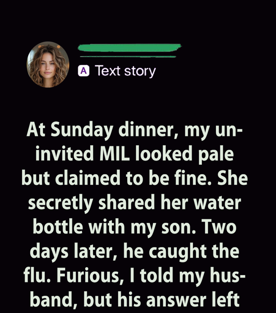 At Sunday dinner, my uninvited MIL looked pale but claimed to be fine. She secretly shared her water bottle with my son. Two days later, he caught the flu.
