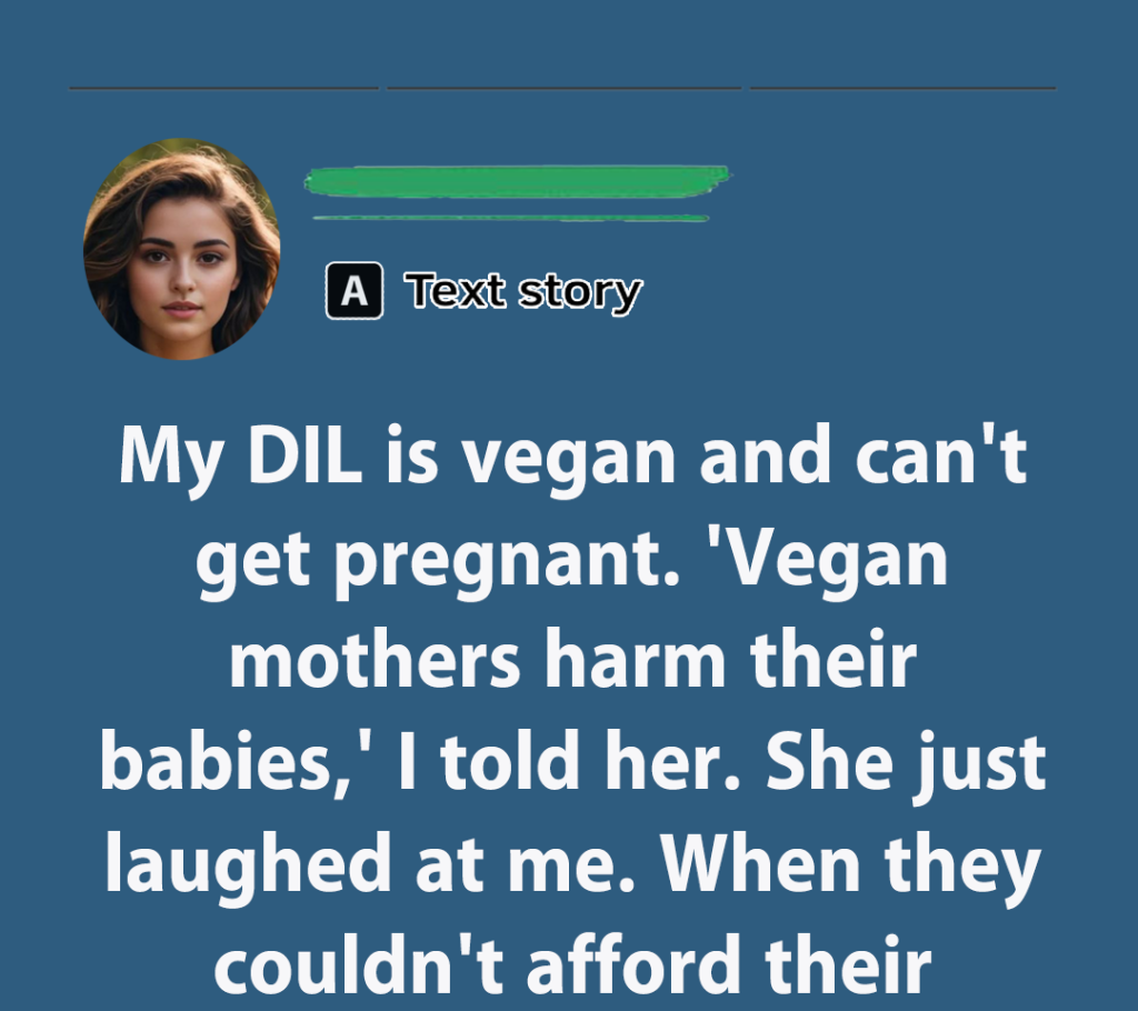 My DIL is vegan and has been trying to get pregnant for two years without success. “Vegan mothers harm their babies,” I told her after reading articles about nutritional deficiencies. She just laughed at me and said I didn’t understand modern nutrition.