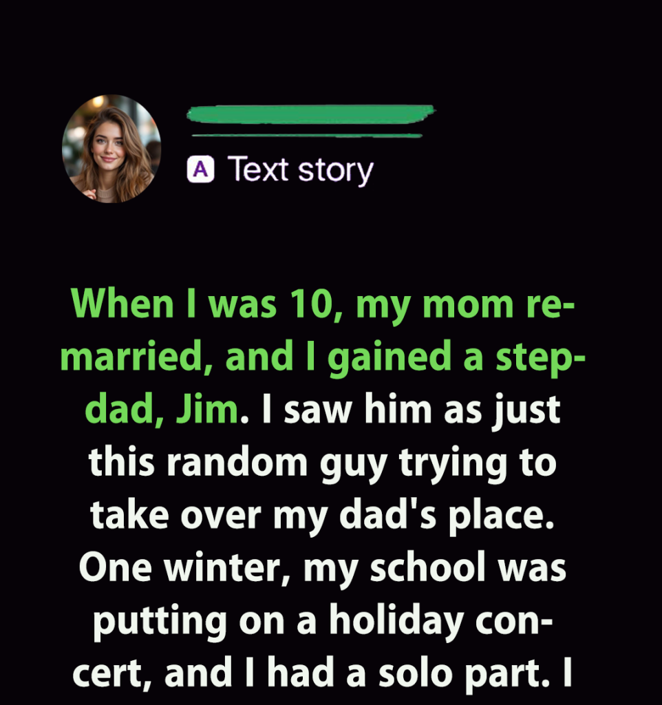 He was just there. Always. My stepdad. A fixture, like the sturdy oak in our front yard – reliable, unmoving, but not exactly warm or expressive. My mom loved him fiercely, said he was a “good man,” and I believed her. But there was always a distance, a quiet wall I couldn’t breach. He was a good man, just not… mine, not fully. Until this year’s holiday concert.