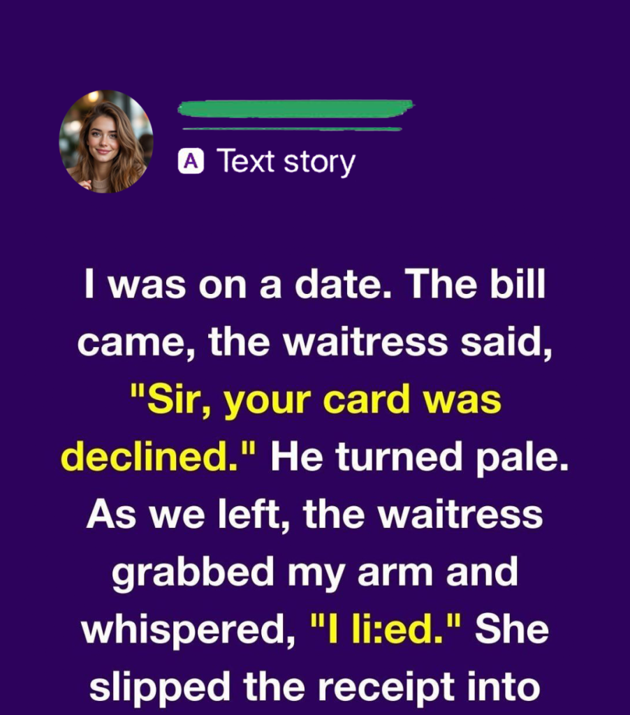 He turned pale. As we left, the waitress grabbed my arm and whispered, “I lied.”