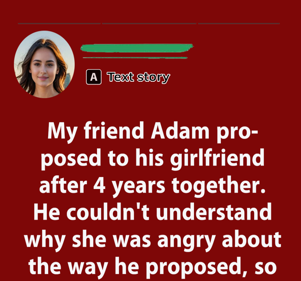 - My friend Adam proposed to his girlfriend after 4 years together. He couldn’t understand why she was angry about the way he proposed, so he showed me the video.