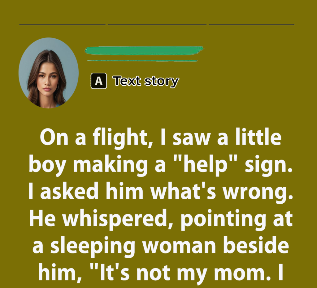 - I’m a flight attendant. That day, I was working as usual when I noticed a little boy, around 5, sitting with a woman. He looked nervous and kept glancing around, then made a hand gesture I recognized as “help.” I asked him quietly what was wrong, and he said, “It’s not my mom, I lost my mom!” Then, the woman next to him woke up and, to my shock, she grabbed the boy’s arm, then tried to calm him down.