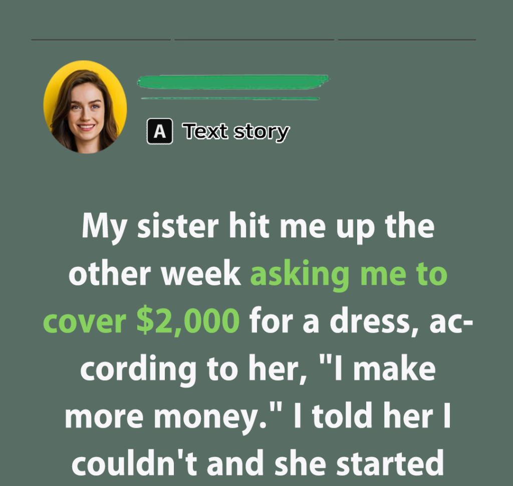 My sister hit me up the other week asking me to cover $2,000 for a dress. Her reasoning? “You make more money, it’s fine.”