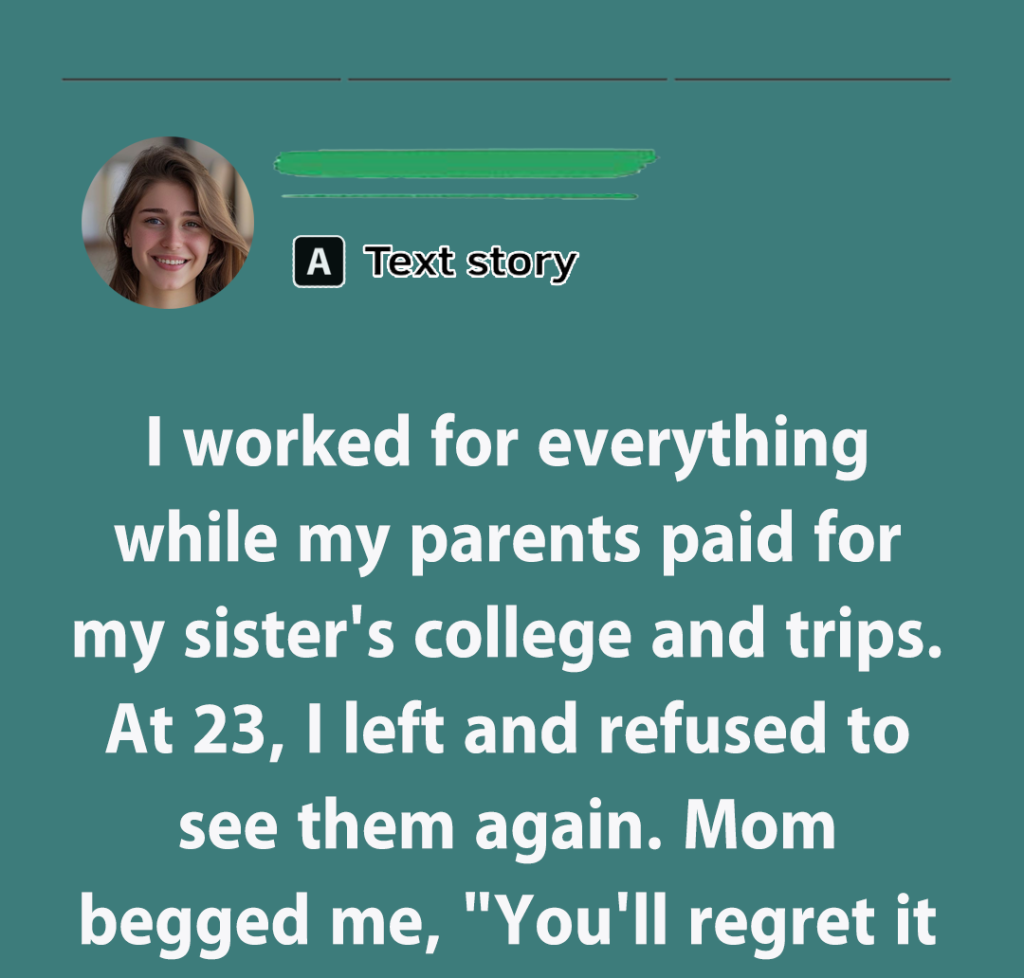 So, at 23, I left and refused to see them again. Mom begged me to let them back into my life. She cried and said, “You’ll regret it one day.”