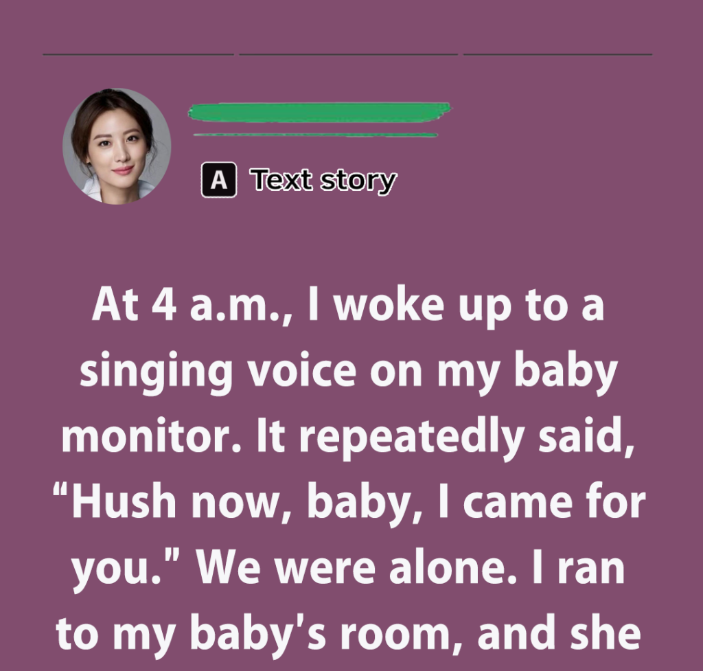 - At 4 a.m., I woke up to a singing voice on my baby monitor. It repeatedly said, “Hush now, baby, I came for you.” We were alone. I ran to my baby’s room, and she was asleep. I tried to calm myself, saying it was a bad dream.