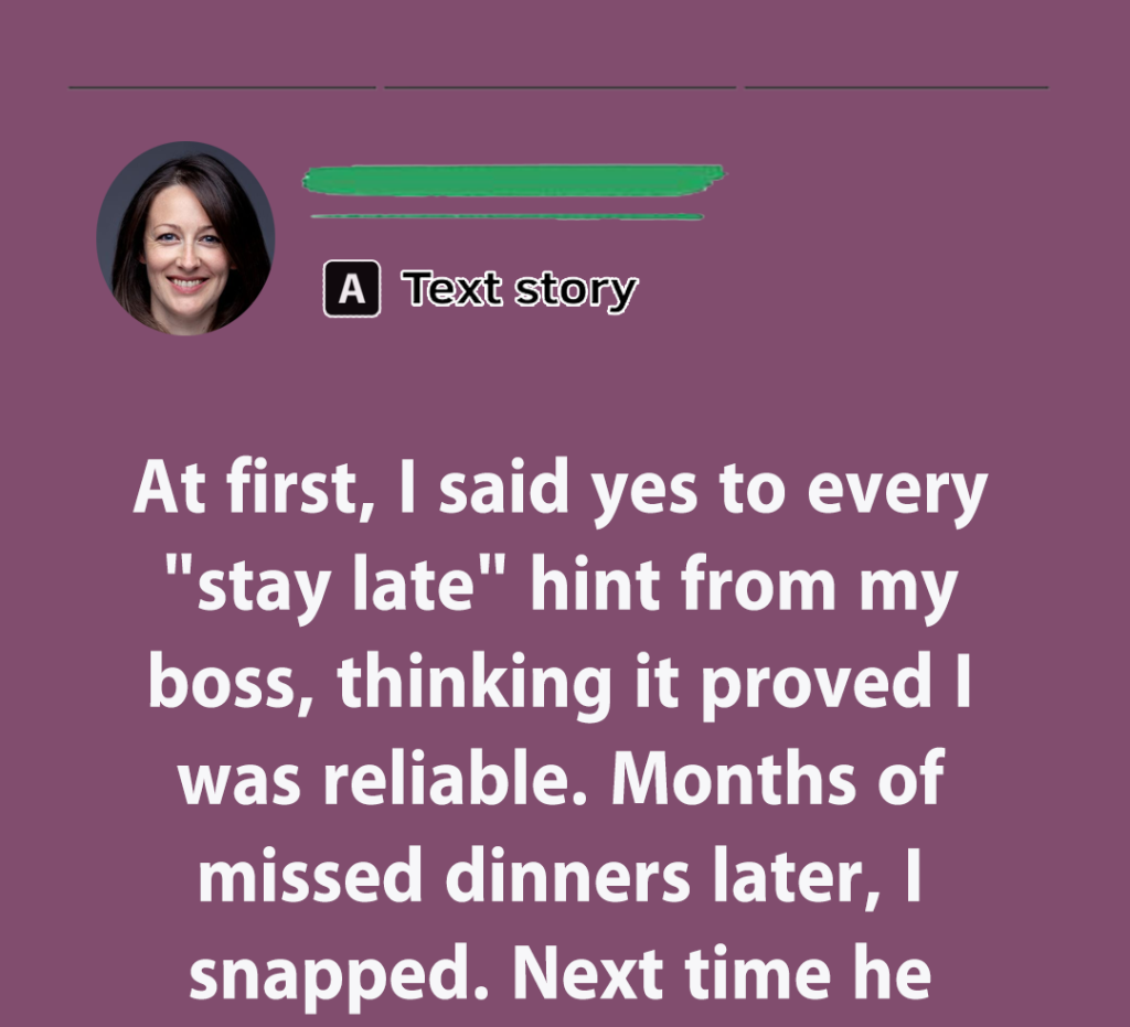 When I first started at my job, I thought saying “yes” to everything was the way to prove myself. My manager took full advantage. He never told me to stay late — he’d just linger at my desk at 5:00 and casually drop, “This needs to be wrapped up before morning.” I wanted to seem reliable, so I kept doing it. Weeks turned into months of missed dinners, cold takeout at my desk, and stumbling home close to midnight.