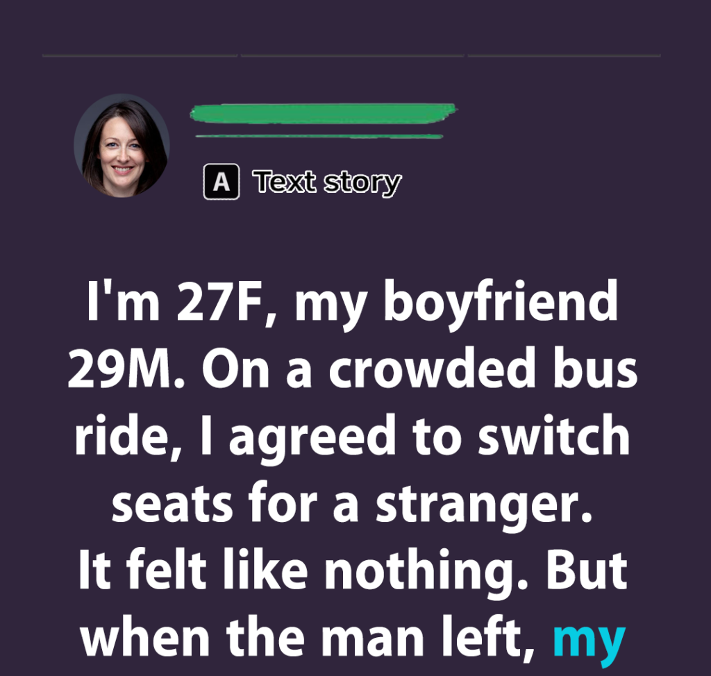 I’m 27F, and my boyfriend (29M) and I were on this packed bus. No space to breathe, everyone sweaty and irritable. I had a window seat, and he was on the aisle. A guy leaned over and asked if we could switch so he could sit near his buddy. I didn’t think much of it, just scooted over to be polite.