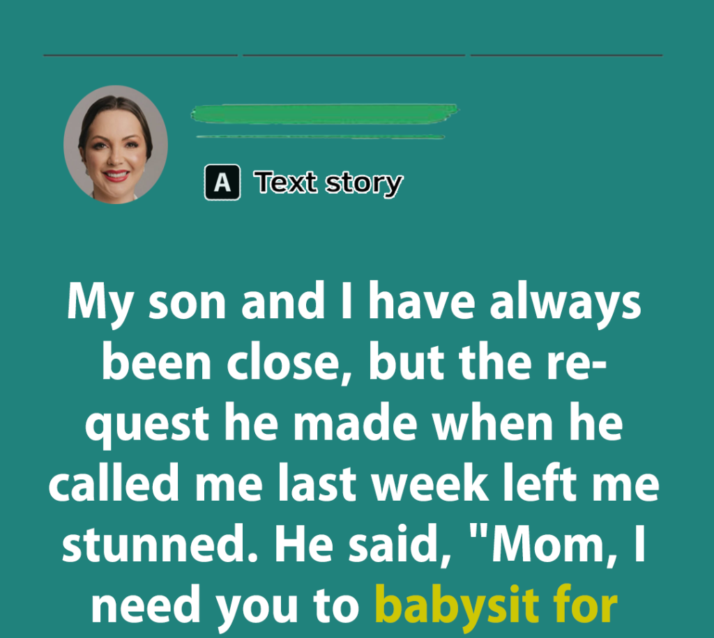 My son and I have always been close, but the request he made when he called me last week left me stunned. The conversation went well until he said, “Mom, I need you to babysit for two weeks while I go on a business trip.”