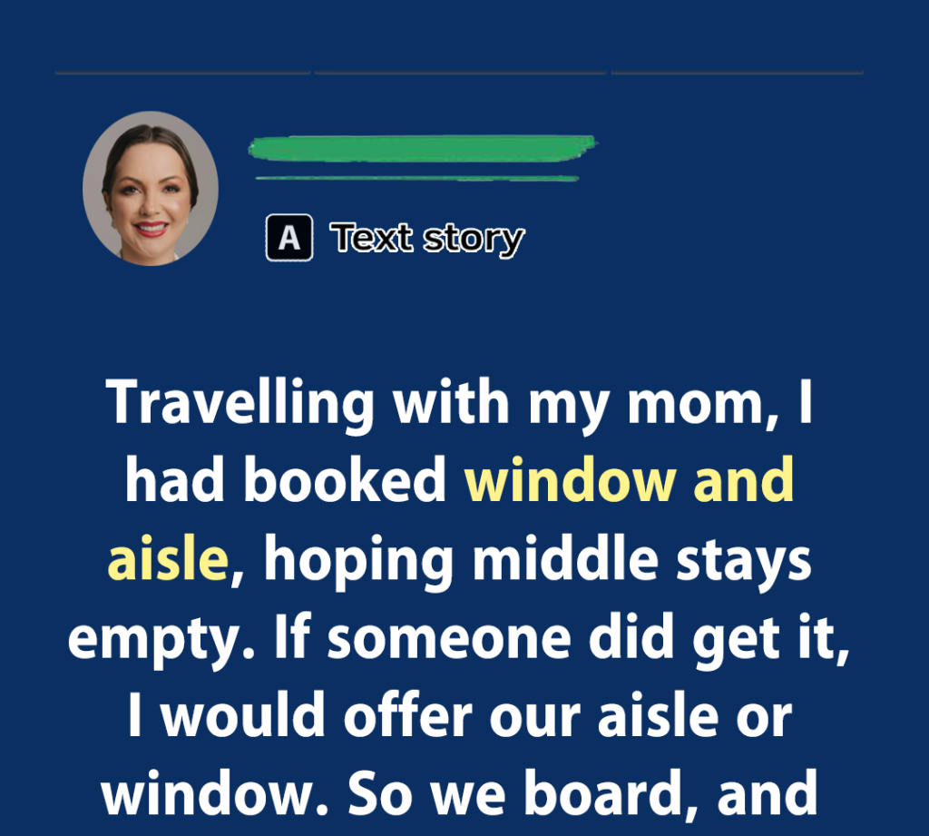 I calmly explained to him that my mother and I had booked the window and aisle, but this woman had made herself comfortable in our aisle seat first.