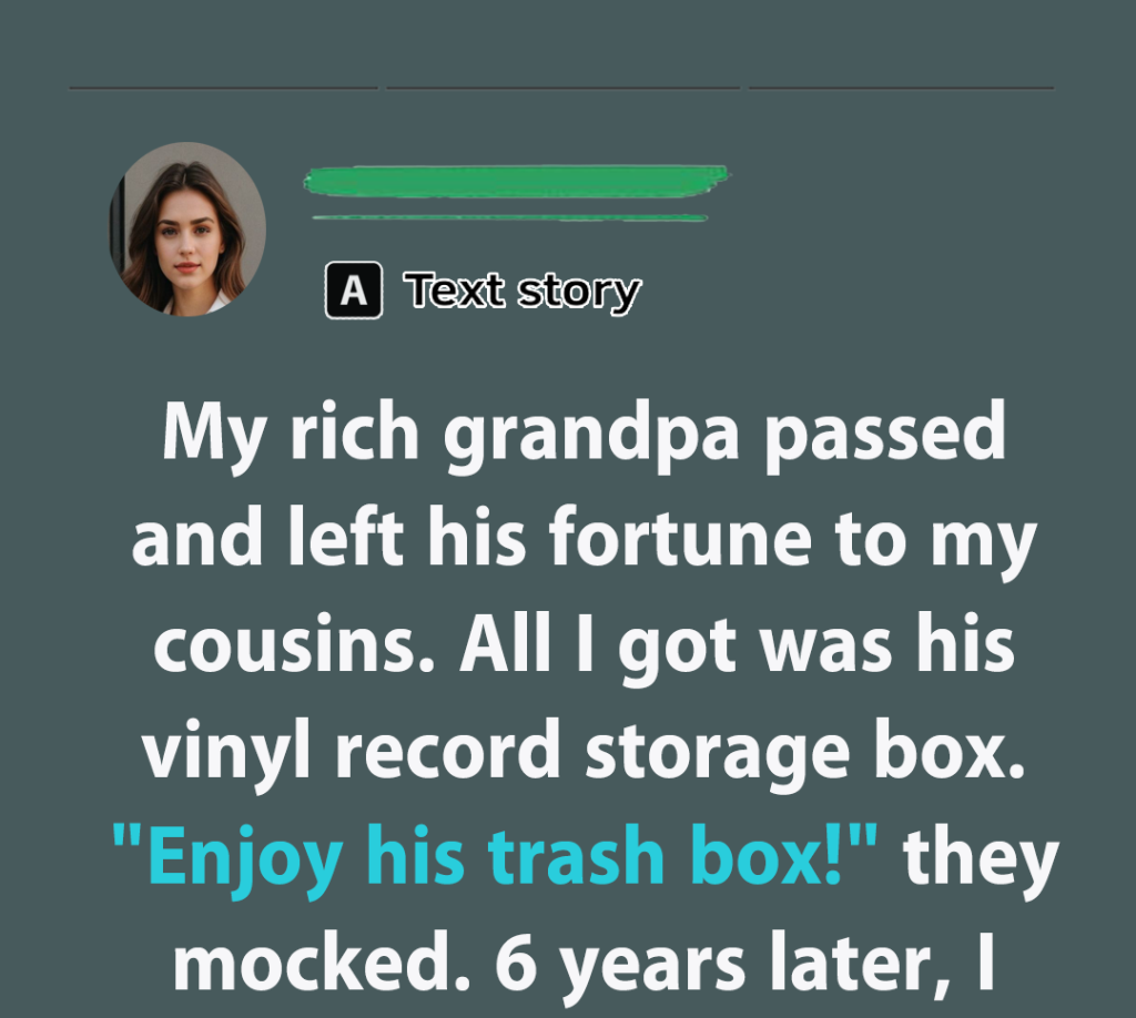 - My rich grandpa passed and left all his fortune to my cousins. All I got was his old vinyl record storage box. “Enjoy his trash box!” they mocked me.