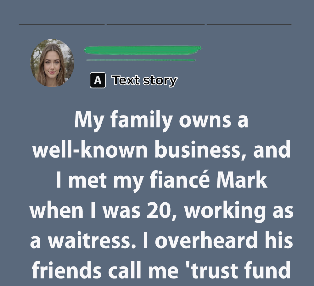My family owns a well-known business, and I met my fiancé Mark when I was 20, working as a waitress. I overheard his friends call me ‘trust fund Barbie and stupid,’ and him say, ‘3 more years and I’m free.’ I felt sick. So without telling him, I…