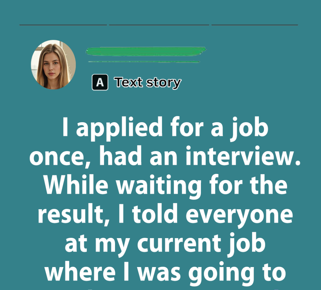 - I applied for a job once, had an interview. While waiting for the result, I told everyone at my current job where I was going to work. I got a new job, started working there.