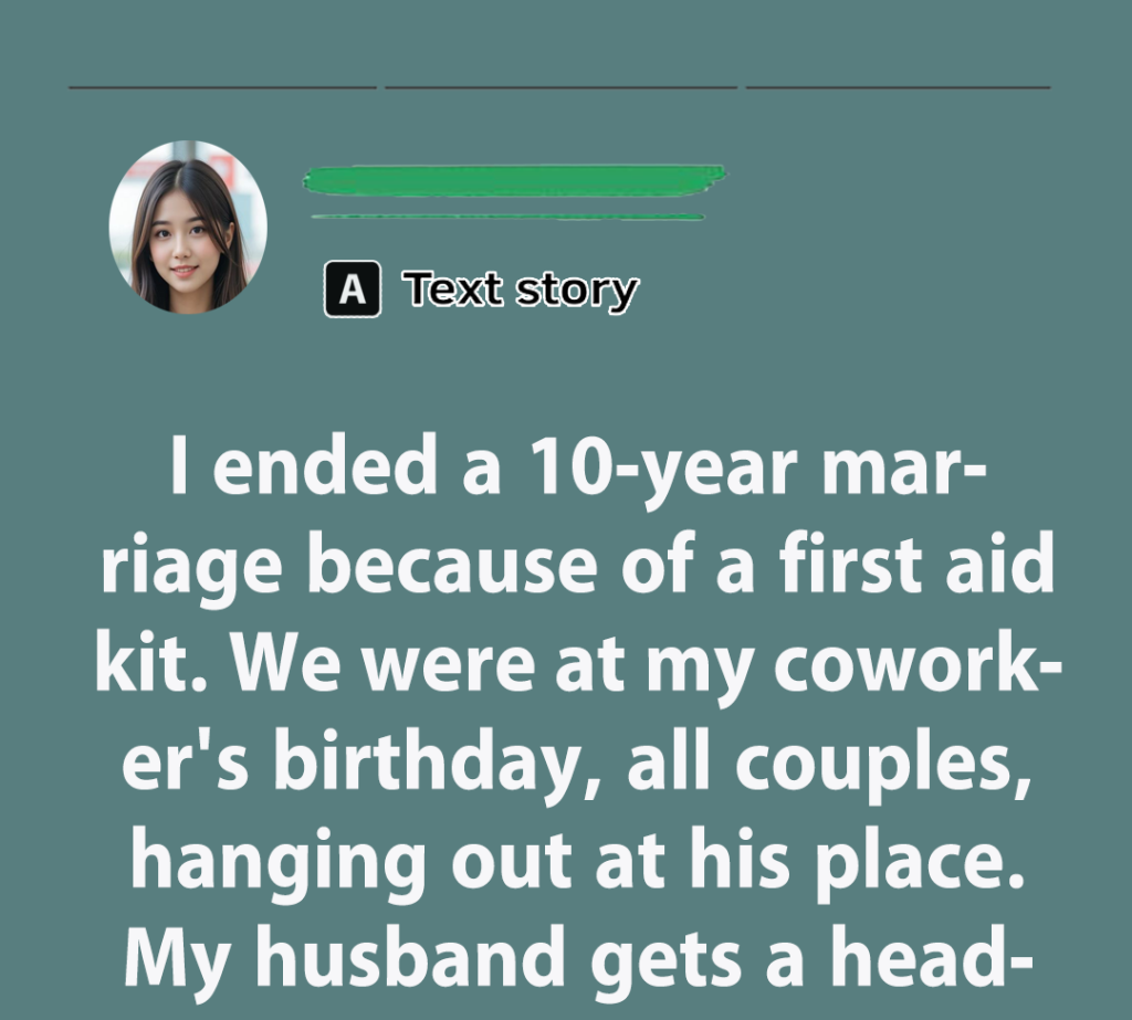 My husband goes, “Wow, not like ours, ours is a total mess.” And I just… snapped. I run a business, he doesn’t even have a job, and yet he’s always on my case — I don’t cook enough, don’t clean enough, raising our kid “wrong.” That little comment about the first aid kit was the last straw.