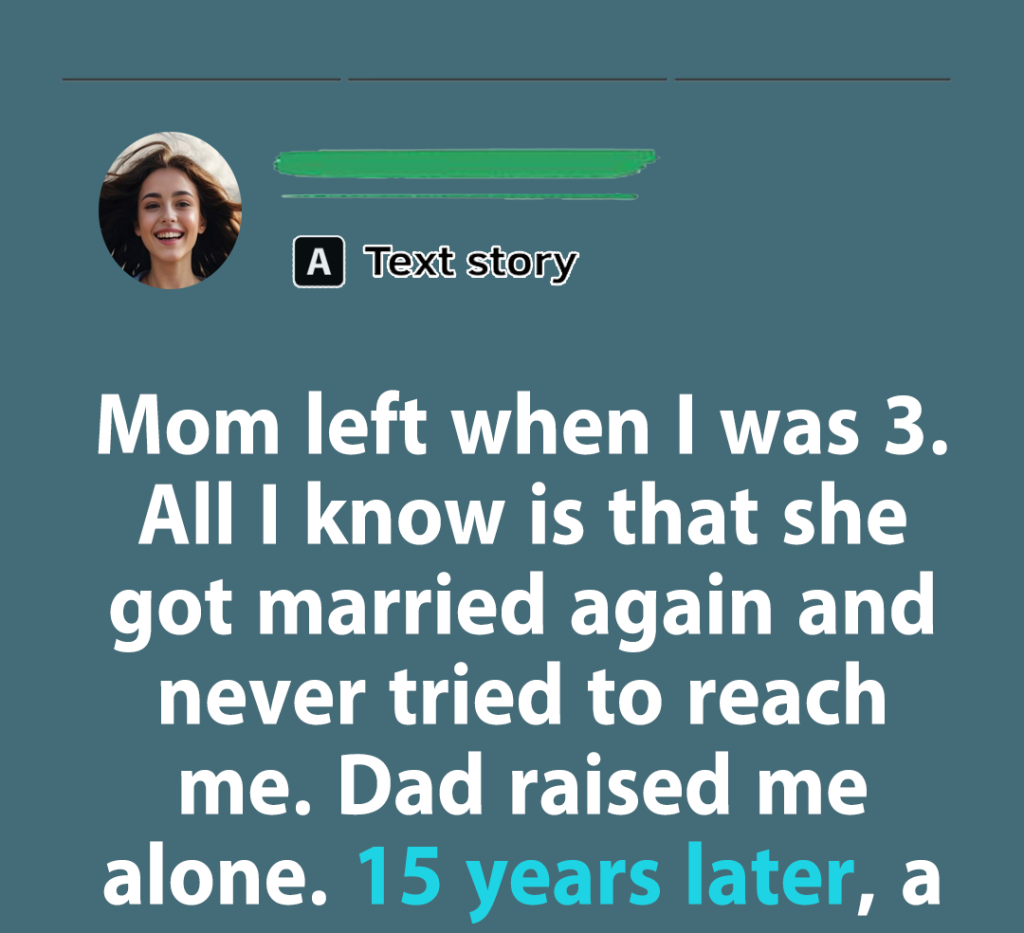 - Mom left when I was three. All I know is that she had another family and never tried to reach out to me. Dad raised me alone.