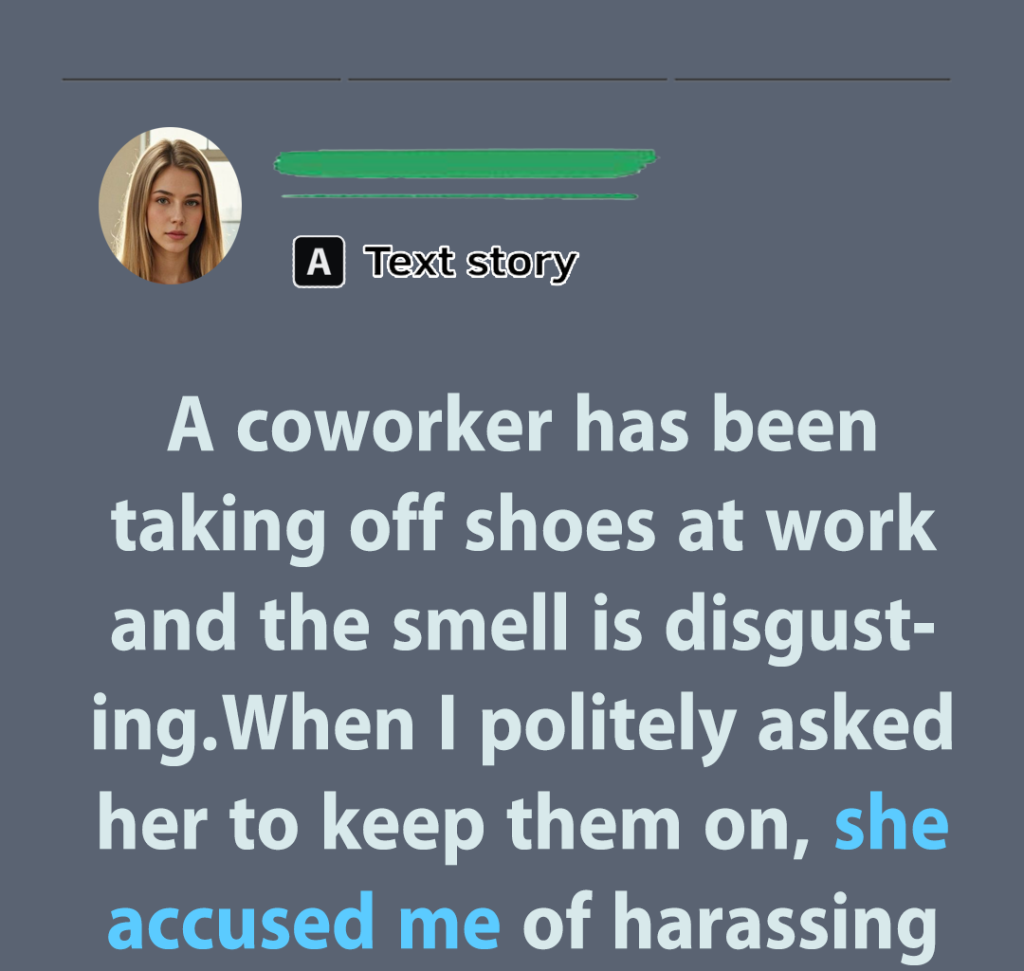 That’s when things took a turn for the worse. When I politely asked her to keep them on, she became defensive, insisting that she would know if her feet smelled. She accused me of harassing her and threatened to involve HR.