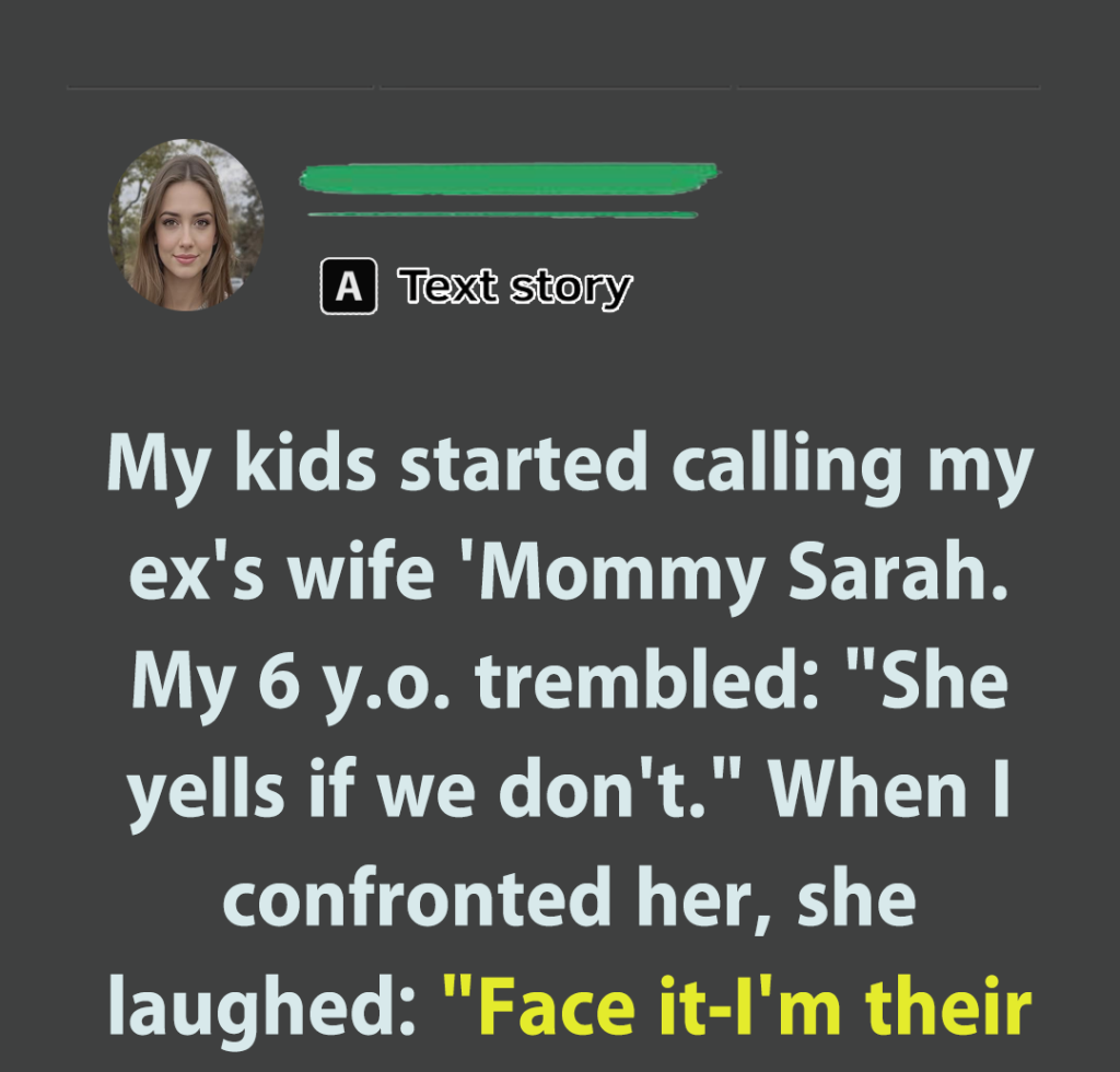 My kids started calling my ex’s wife “Mommy Sarah.” My 6 y.o. trembled: “She yells if we don’t.” When I confronted her, she laughed: “Face it—I’m their real mother now.” My ex stayed silent.