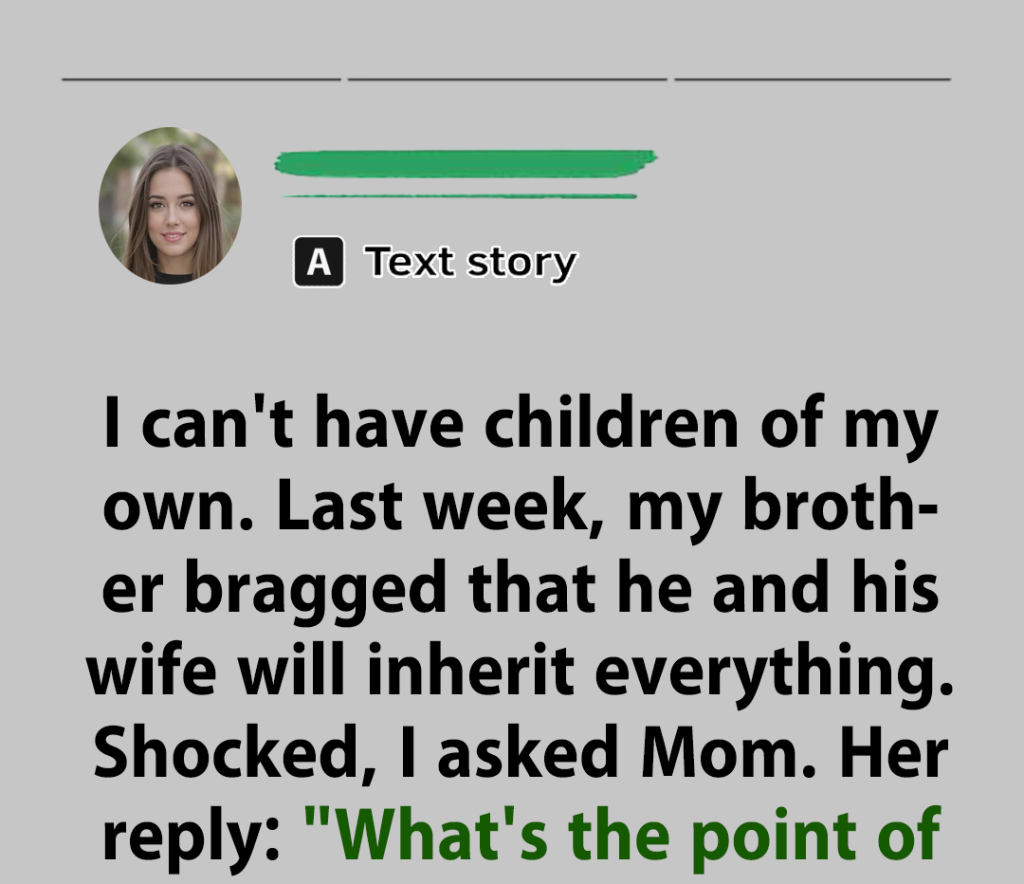 Last month, my brother casually mentioned he and his wife would be inheriting everything. I was confused, so I asked my parents. That’s when my mom told me straight up, “You chose a lifestyle that ends with you. What’s the point of passing things to you? You’re a dead end!”
