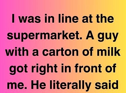 I was in grocery queue. A man with a milk carton approached me. He said nothing. I grasped and supported his milk.