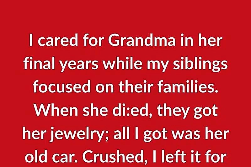 I cared for Grandma in her final years while my siblings focused on their families. When she died, they got her jewelry; all I got was her old car. Crushed, I left it for a year.