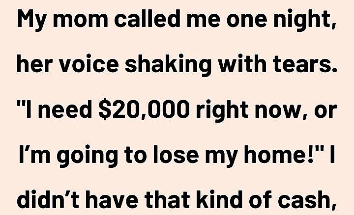 That night, my mom told me she needed $20,000—immediately—or she’d lose her home. I didn’t have that kind of money, but that didn’t matter. I went to the bank and took out a loan. Helping her felt like the only option. There was no second-guessing. It was my mother.