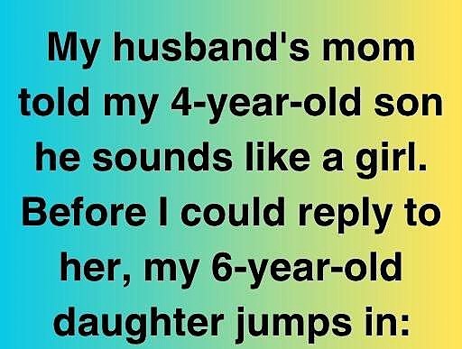 My mother-in-law blinked, obviously not expecting a child to challenge her. She tried to laugh it off, saying, “Oh honey, I didn’t mean anything by it. I just meant he has a sweet little voice.”
