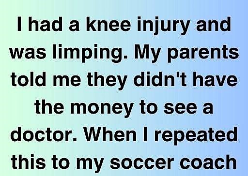 My knee hurt and I limp. My parents told me they couldn’t afford doctor visits. My soccer coach was shocked and furious when I repeated this. “Do you know how serious this could be? You can’t ignore it!”
