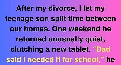 I let my teenage son divide time between our homes after my divorce. He returned quietly with a new tablet one weekend. He murmured, “Dad said I needed it for school. I froze after checking settings.