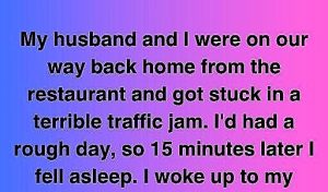 My husband and I were on our way back home from the restaurant and got stuck in a terrible traffic jam. I’d had a rough day, so 15 minutes later I fell asleep. I woke up to my husband getting out of the car. I looked out the window, and it was dawn! My first thought was: had we been stuck in traffic all night?! I looked out and realized we were no longer on the highway.