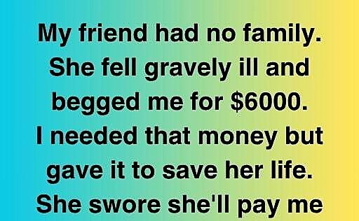 The friend had no family. She requested $6000 after being very ill. Needed that money but donated it to save her. She promised to repay me but disappeared. I heard she returned 9 years later. I almost fainted entering her house.