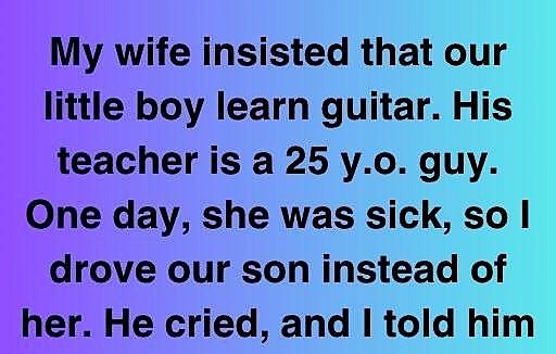 My wife suggested our son learn guitar. His teacher is 25. When she was sick, I drove our son. I told him not to go after he sobbed. I met the teacher privately later. I visited his place and was surprised to discover…