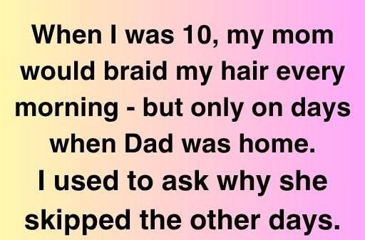 Only when Dad was home did my mom braid my hair every morning when I was 10. I wondered why she skipped other days. She smiled and said, “It’s better this way.”