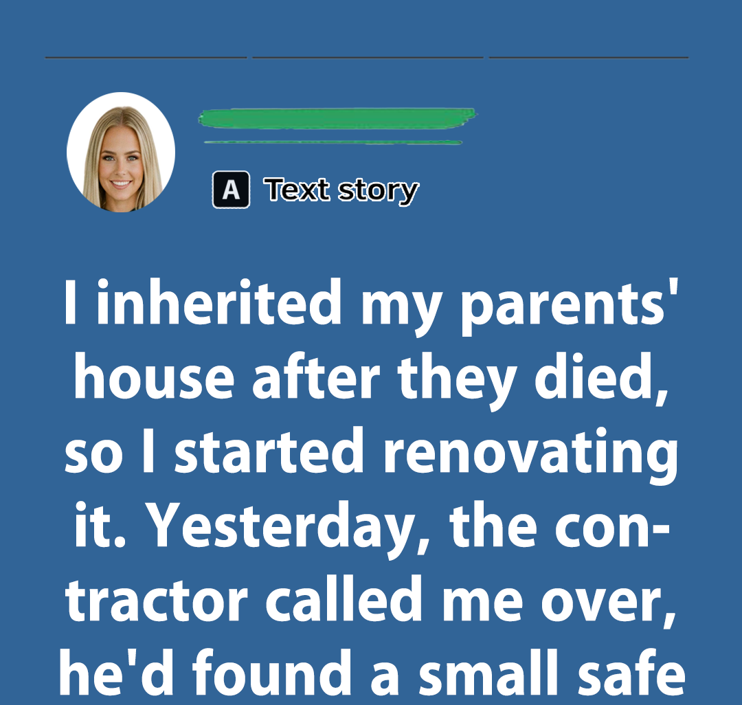 - I inherited my parents’ house after they passed, so I started renovating it. Yesterday, the contractor called me over, he’d found a small safe behind the kitchen wall.