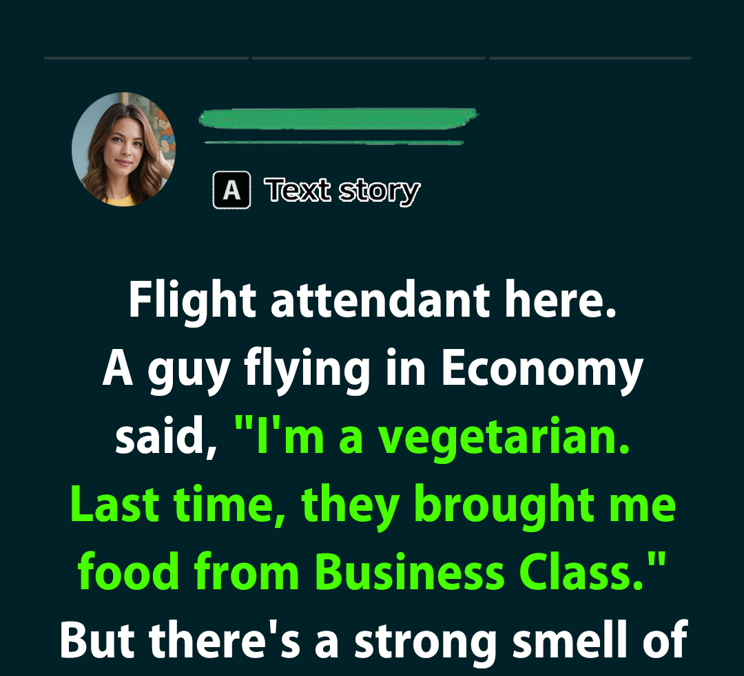 A guy was flying in economy. We were serving food, and I asked him, “Would you like chicken?” And he said, “I’m a vegetarian.” And then added, “Last time they brought me food from business class.”