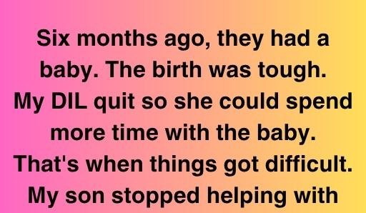 Six months ago, they had a baby. The birth was tough. My daughter-in-law quit so she could spend more time with the baby.