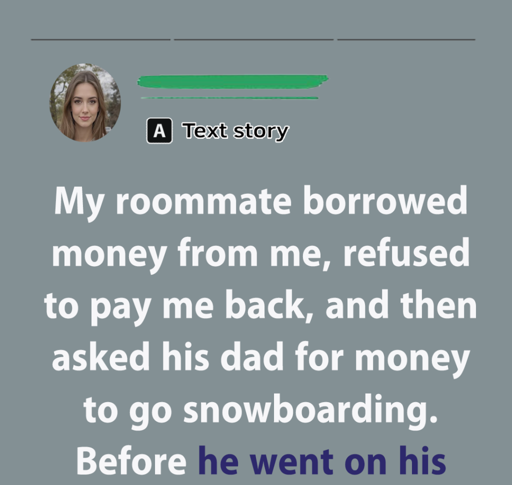 - He borrowed money from me, refused to pay me back, and then asked his dad for money to go snowboarding. Before he went on his trip, he LITERALLY waved his money in my face and said I wasn’t getting any. The moment he left the building, I called his dad and explained what happened. His dad sent me a check, punished his kid, and made him cut his trip short. © TekJansen69 / Reddit